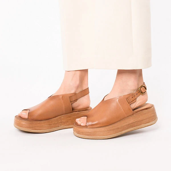 Ein unverwechselbarer Hingucker sind die Sandaletten von A.S.98. Die Decksohle besteht aus natürlich atmungsaktivem Echtleder, das ein komfortables Tragegefühl begünstigt. Ein stilsicherer Auftritt kombiniert mit angenehmem Komfort gelingt dank des mittelhohen Keilabsatzes. Das Obermaterial ist aus echtem Rindsleder. Damit die Weite bestens angepasst werden kann, ist der Schuh mit einem Riemenverschluss ausgestattet.