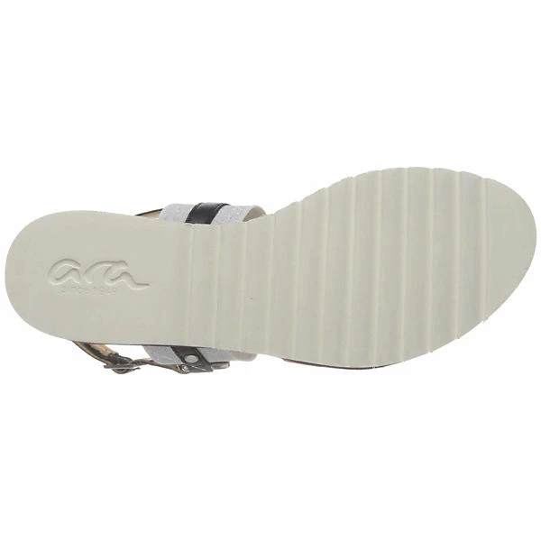 Schöne Sandalen von Ara aus einem feinen hochwertigem Glattleder. Innen ist der Schuh mit einem cromfrei gegerbtem Leder ausgestattet. Der Schuh verfügt über eine etwas breitere Weite. Der Keilabsatz hat eine Höhe von cirka 4 cm. Die Laufsohle ist aus Krepp. Über die paraktische Schließe kann der Schuh dem Fuß optimal angepasst werden. Die Schuhgröße fällt regulär aus.