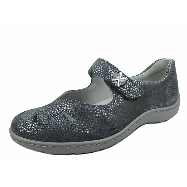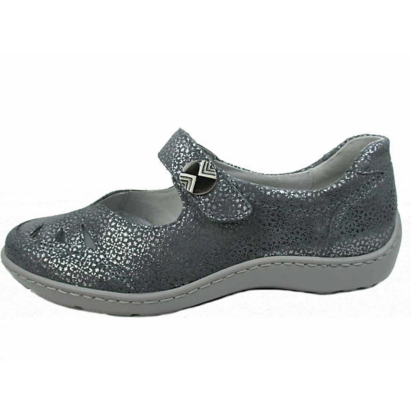 Schöne Ballerinas von Waldläufer aus einem feinen hochwertigem geprägten Glattleder. Innen ist der Schuh mit einem cromfrei gegerbtem Leder ausgestattet. Der Schuh verfügt über eine etwas breitere Weite. Der Absatz ist durchgehend flach. Die Laufsohle ist aus Krepp. Der Klettverschluss zum einfachen und bequemen an- und ausziehen sorgt für einen guten Halt.Ebenfalls ist eine stufenlose Anpassung an den Fuß möglich. Die Schuhgröße fällt regulär aus.