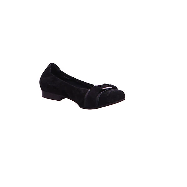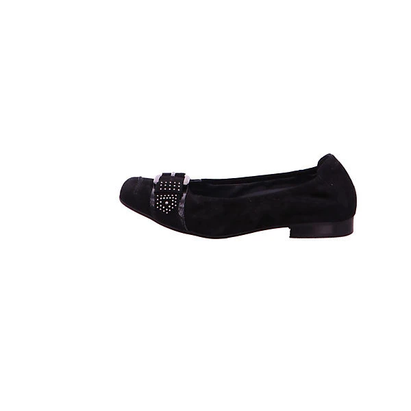 Schöne Ballerinas von Semler aus einem feinen hochwertigem Veloursleder. Innen ist der Schuh mit einem cromfrei gegerbtem Leder ausgestattet. Der Schuh verfügt über eine etwas breitere Weite. Der stabile Blockabsatz hat eine Höhe von cirka 2 cm. Die Schuhgröße fällt regulär aus.