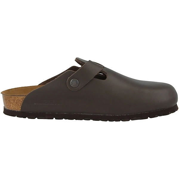 Der Clog Boston von der Traditionsmarke Birkenstock ist mit Glattleder als Obermaterial ausgestattet. Es verfügt über eine feinnarbige und gleichmäßige glatte Oberfläche. Die Laufsohle aus EVA-Material verspricht eine angenehme Schrittdämpfung und ist resistent gegen beständige Hitze, Öle oder Lösungsmittel. Für weiteren Tragekomfort sorgt das Birkenstock Fußbett aus Kork. Die Sandalen sind beliebt für Beruf und Freizeit.