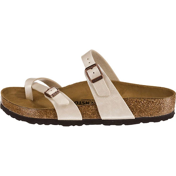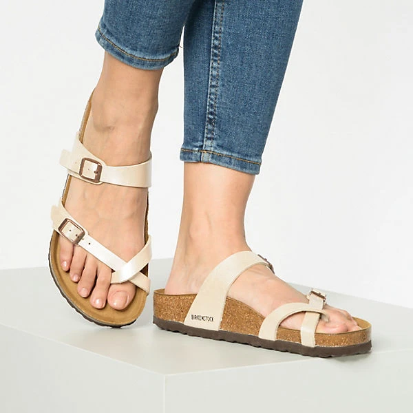 Die Mayari Sandale ist ein Klassiker von Birkenstock, der schon längst zu den absoluten Fashion-Must-haves gehört! Der Treter kommt mit zwei schmalen Riemchen aus Birko-Flor, einem anatomisch vorgeformten Fußbett mit Echtleder-Bezug und einer rutschfesten EVA-Laufsohle.