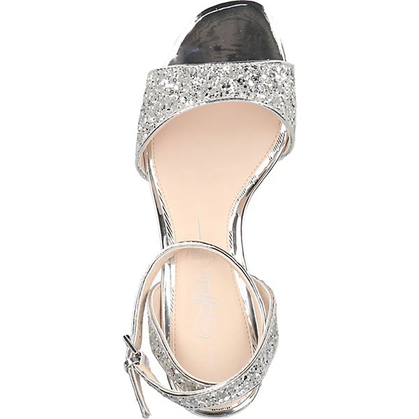 Mit dieser extravaganten Riemchensandalette der Marke Buffalo stehen Sie auf jeder Veranstaltung im Mittelpunkt! Das wunderschöne Design, der glitzernde Blockabsatz, das süße Riemchen und die offene Fußspitze machen diese schicke Sandalette zu etwas ganz besonderem.