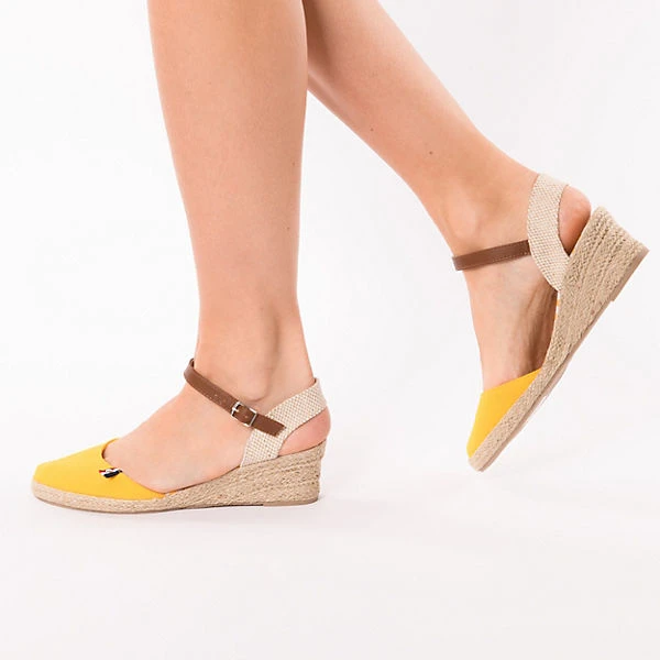Unterstreichen verschiedene Outfits: Diese trendigen Keilsandaletten von der Marke Inselhauptstadt. Das Obermaterial besteht aus einem Materialmix aus Synthetik und Textil und ist strapazierfähig sowie ansprechend gestaltet. Durch die Schnalle kann die Weite der Schuhe den Bedürfnissen entsprechend angepasst werden. Der mittelhohe Keilabsatz sorgt für ein angenehmes Tragegefühl und einen stilsicheren Look.
