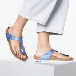Birkenstock Gizeh Icy Metallic Komfort-Pantoletten Weit – Blau