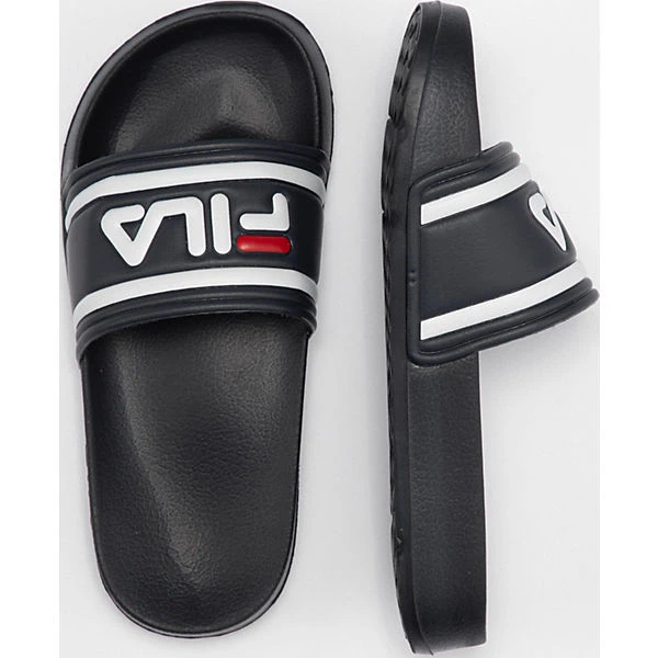 Für See und Schwimmbad gut geeignet sind diese Badelatschen der Marke FILA. Dieses Schuhpaar kommt ohne jeglichen Verschluss aus, sodass schnell und einfach hineingeschlüpft werden kann.
