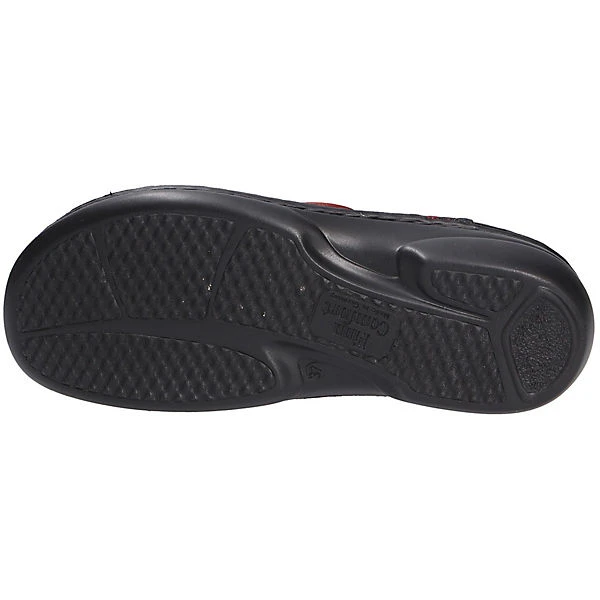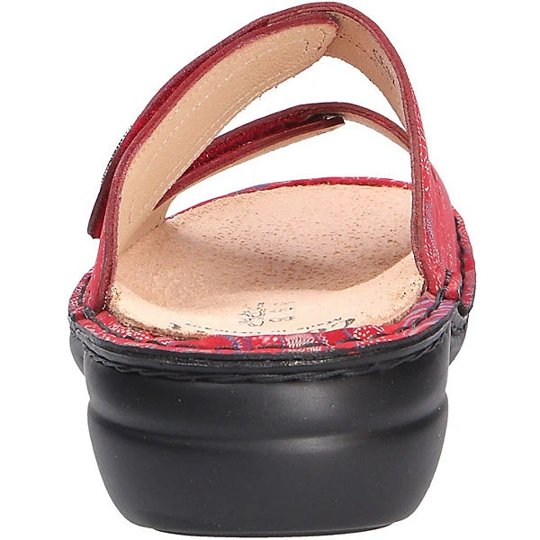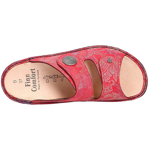 Comfort Damen Pantolette aus dem Hause Finn Comfort aus einem feinen hochwertigem Glattleder.Dieses Leder verleiht einen edlen Look und ist gut zu pflegen. Das exzellente Innenleben aus bestem Leder gibt Ihnen ein erholsames Gefühl an langen Tagen. Die lederbezogene, gepolsterte Einlegesohle ist herausnehmbar.Somit können eigene Einlagen verwendet werden. Der Schnitt ist für breitere Füße (Weite H) geeignet. Der Keilabsatz hat eine Höhe von cirka 1 cm ,für gute Bodenhaftung sorgt die abriebfeste und griffige Gummisohle. Klettverschlüsse halten den Schuh sicher am Fuß und sorgen auch für die individuelle und optimale Anpassung. Die Schuhgröße fällt regulär aus.