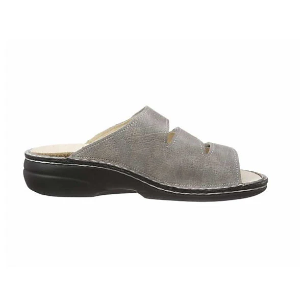 Damen Pantoletten von Finn Comfort aus angenehm weichem und hochertigem Leder. Innen ist der Schuh mit einem cromfrei gegerbtem Leder ausgestattet. Der Schuh verfügt über eine etwas breitere Weite. Der Absatz ist durchgehend flach. Die Laufsohle ist aus Gummi. Der Klettverschluss zum einfachen und bequemen an- und ausziehen sorgt für einen guten Halt.Ebenfalls ist eine stufenlose Anpassung an den Fuß möglich. Die Schuhgröße fällt regulär aus.