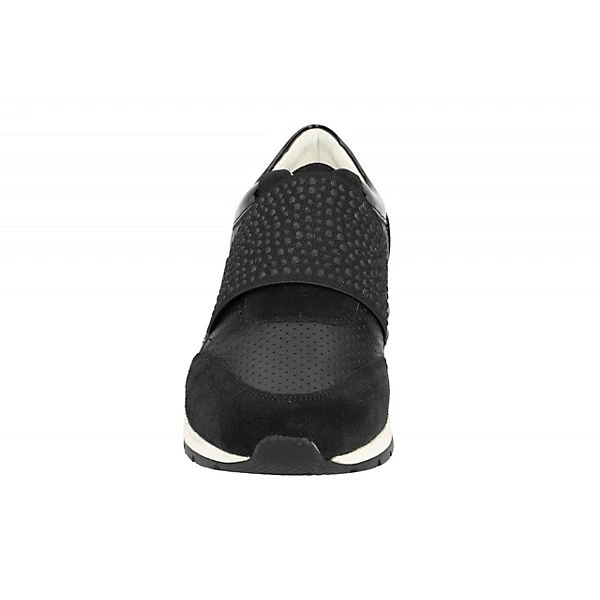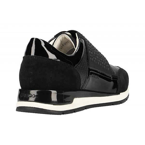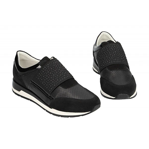Hersteller: Geox Hersteller Art-Nr.: D82N1A 02285 C9999 Modellname: SHAHIRA – donna shahira a Machart: Damenschuhe – sportliche Slipper – Halbschuhe Farbe: schwarz + Sohle in weiß (black) Obermaterial: Glattleder + Velourleder Mix (Suede / Nappa / Lack) Innenfutter: Textil – weich gepolstert Innensohle: Textil – atmungsaktiv und antibakteriell Wechselfußbett: Ja – herausnehmbare Innensohle Laufsohle: Gummisohle, wasserdicht + atmungsaktiv, Geox ATMET Verschluss: Gummizug – ohne Verstellmöglichkeit Absatzart: flach – kein Absatz Schuhform: rund Größenhinweis: fällt normal aus Weitenangabe: G – normal Weite