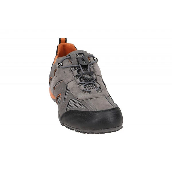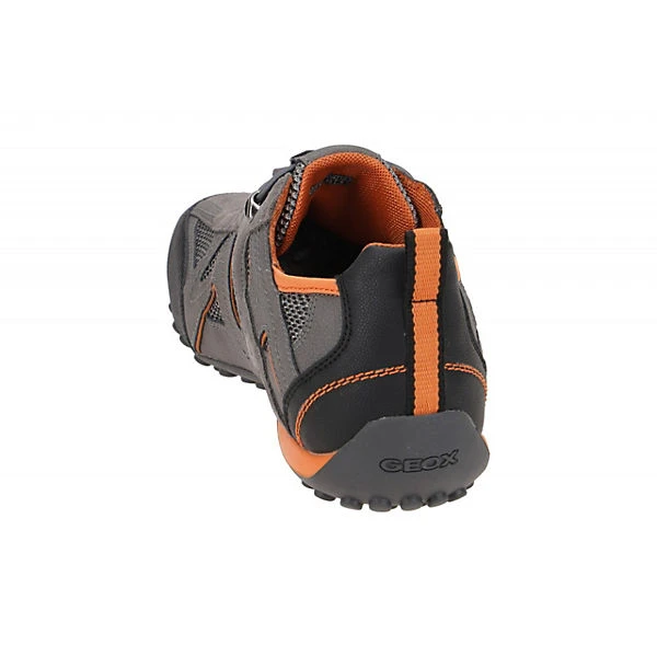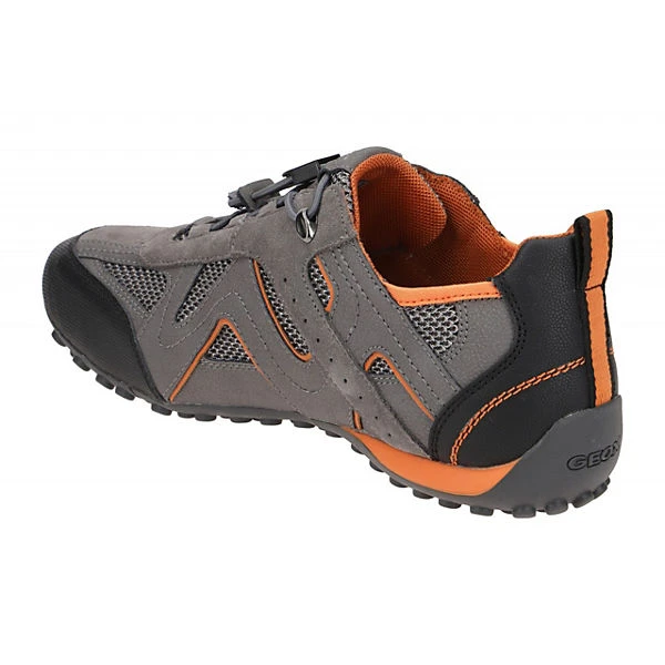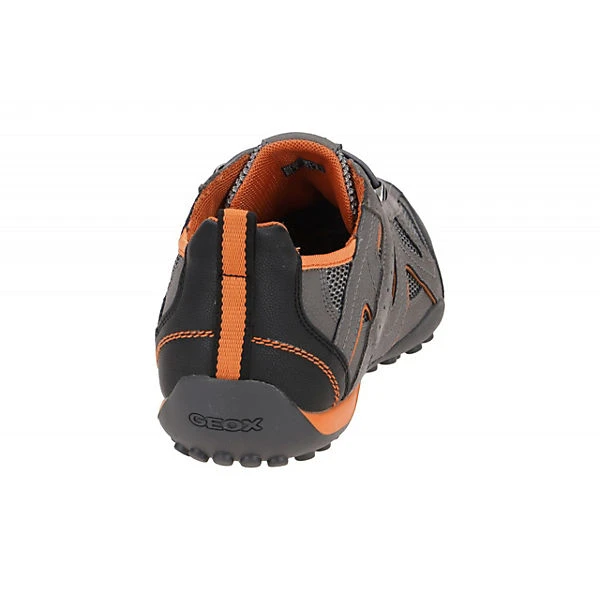 Hersteller: Geox Hersteller Art-Nr.: U2507B 014EK C1F5Y Modellname: SNAKE – uomo snake j Machart: Herrenschuhe – Sneakers – Halbschuhe Farbe: grau + schwarz + orange (grey / rock) Obermaterial: Textil / Mesh + Synthetik (mesh + NBK Synt) Innenfutter: Textil / Mesh – atmungsaktiv Innensohle: Textil – atmungsaktiv und antibakteriell Wechselfußbett: Ja – herausnehmbare Innensohle Laufsohle: Gummisohle, wasserdicht + atmungsaktiv, Geox ATMET Verschluss: Gummizug Schnellverschluss Absatzart: flach – kein Absatz Schuhform: rund Größenhinweis: fällt normal aus Weitenangabe: G – normal Weite