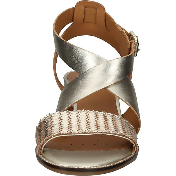 Mit herausragender Qualität und hochwertigem Leder ausgestattet, präsentiert sich diese komfortable und geschmackvolle Riemchensandale von Geox, welcher perfekt zu einem seriösen Look, als auch zu besonderen Veranstaltungen getragen werden kann. Hauptsächlich durch seine bemerkenswerte Ausstattung mit Metallic-Look und Flechtoptik bietet Ihnen dieser modischen und modernen Schuh eine besondere Freude im Alltag.