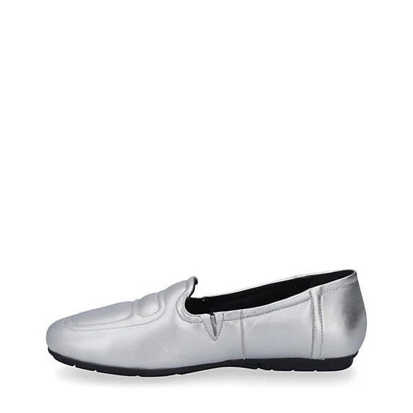 Unser silberer Slipper für Damen ist das perfekte Accessoire für Deine Freizeitgardarobe im Frühling und Sommer. Das Modell Cecina 05 ermöglicht einen problemlosen Einstieg durch einen praktischen Gummizug. Bei der Machart Sacchetto umschließt das weiche Leder deinenFuß wie einen Handschuh. Weite G ist die Komfortweite für alle normal gebauten Füße.
