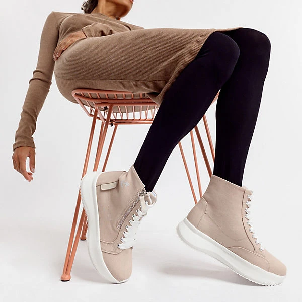 Toll zu verschiedenen Gelegenheiten: Die alltagstauglichen High Sneakers aus dem Hause Inselhauptstadt. Durch den Schnürverschluss ist ein angenehmer Sitz kein Problem. Das Obermaterial aus Canvas gibt dem Schuh einen besonderen Touch. Das Plateau setzt zudem einen coolen Vintage-Akzent.
