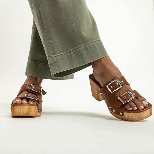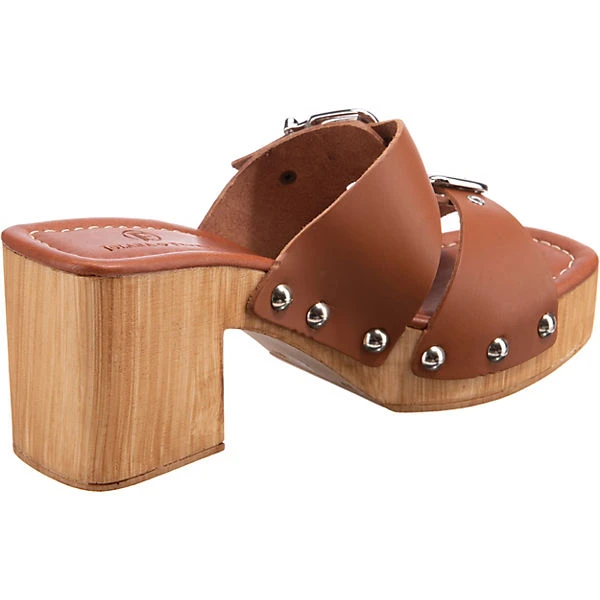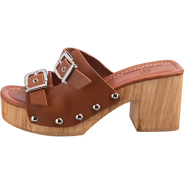 Aus dem Hause JOLANA & FENENA: Die praktischen Clogs. Das Schuhpaar ist aus echtem Leder. Der extravagante Absatz präsentiert sich mit beachtlicher Höhe.