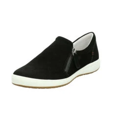 Slipper-Zeit ist Frühling-Zeit. Genieße diese besondere Zeit im Jahr mit unseren schwarzen Slippers. Dieser Slipper wird von uns aus langlebigem Nubuk-Leder produziert. Der geschickte Reißverschluss dient einem festen Halt in dem Slipper. Dieses Modell hat eine herausnehmbare Einlegesohle zum Wechseln. Die Fertigungsart Strobel wird nomalerweise für Turnschuhe verwendet weshalb sie den Schuh sehr leicht macht. Mit der Weite G bietet der Slipper Caren 22 eine normale Weite am Fußballen. Das leichte Modell Caren 22 gibt Dir die Freiheit – Deinen Weg zu gehen.