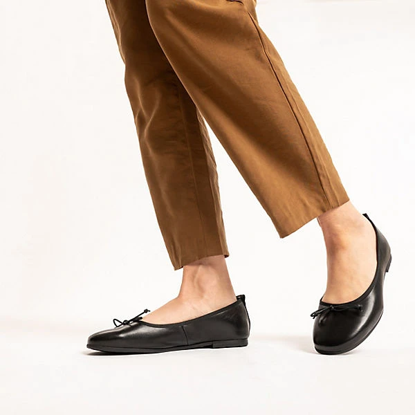 Ergänzen verschiedene Looks: Die modisch aktuellen Ballerinas von der Marke Marc O’Polo. Das echte Nappaleder zeigt sich mit genarbter Oberfläche. Für ein angenehmeres Tragegefühl besteht die Decksohle aus Leder.