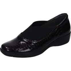 Schuh-Verschlussart: Schlupfschuh, Schuhweite: Weite G, Absatzhöhe: 3,5 cm, Absatzform: Keilabsatz, Obermaterial: Krokolack, Innenmaterial: Synthetik-Futter, Schuhsohlen-Material: PU-Sohle, Decksohle: herausnehmbare Lederdecksohle, Farbe: bordeaux