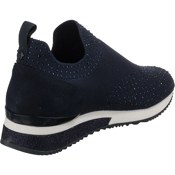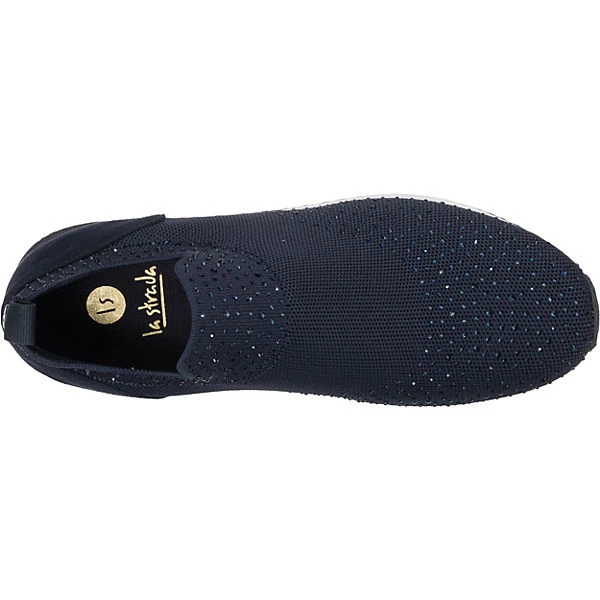 Auf Schritt und Tritt: Die Slip-On-Sneaker von der Marke La Strada© dürfen zu keiner Gelegenheit fehlen. Es handelt sich um ein Modell zum schnellen und einfachen Hineinschlüpfen. Der praktische Materialmix aus Synthetik und Textil im Obermaterial unterstreicht die Aufmachung dieses Schuhpaares.