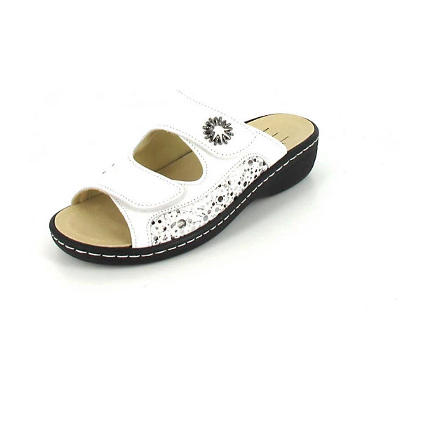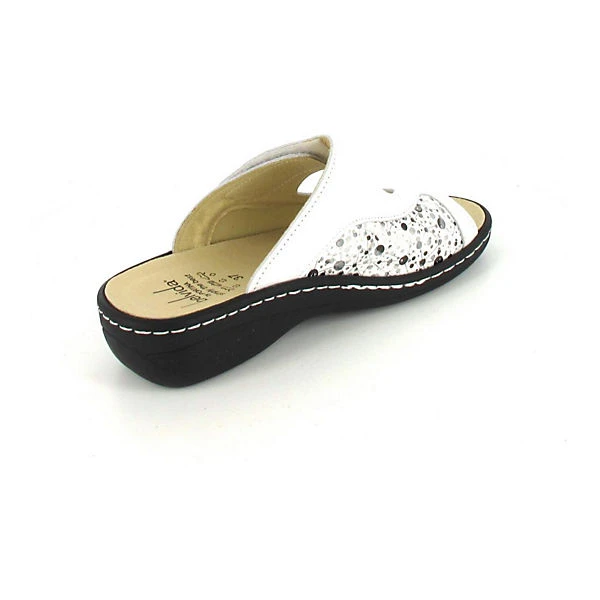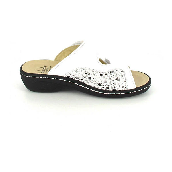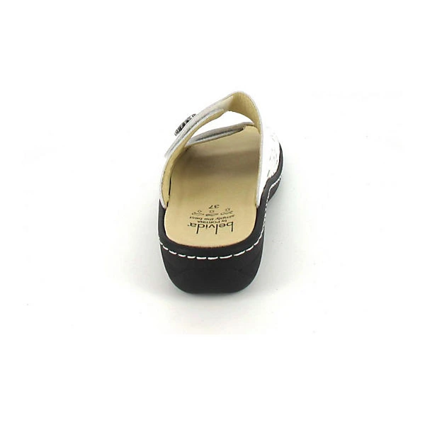 – bequeme Pantolette für Damen von Belvida – der Schuh besteht bis auf Absatz und Laufsohle aus Leder – tolle Highlights auf den Riemen setzten Akzente – beste Anpassung an den Fuß durch den Klettverschluss – ausgeprägte Fersenbettung – herausnehmbare Decksohle für lose Einlagen geeignet