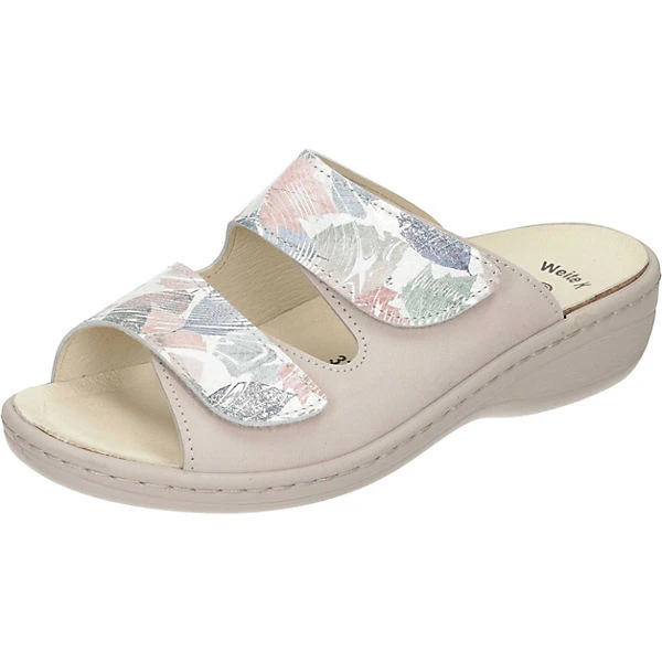 Bei diesem Produkt handelt es sich um einen Schuh aus der Kategorie Komfort-Pantoletten für Damen. Als Obermaterial wurde Leder verwendet und im inneren Bereich des Schuhs wurde Lederfutter und Lederdecksohle, herausnehmbares gepolstertes Naturform-Fußbett verarbeitet. Die Schuhweite dieses Artikels ist Weite K und somit für sehr kräftige Füße. Als Verschlussart wurde Klettverschluss gewählt und die PU-Sohle mit Gummiintasie rundet das Produkt ab. Der Artikel fällt normal aus, bitte die gewohnte Größe bestellen.