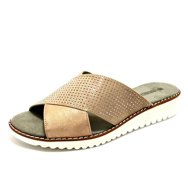 Damen Pantoletten von Jenny aus einem feinen hochwertigem geprägten Glattleder. Innen ist der Schuh mit einem cromfrei gegerbtem Leder ausgestattet. Der Schuh hat eine normale Weite. Der Absatz ist durchgehend flach. Die weiche PU-Sohle schont die Gelenke und federt jeden Ihrer Tritte optimal ab. Die Schuhgröße fällt regulär aus.