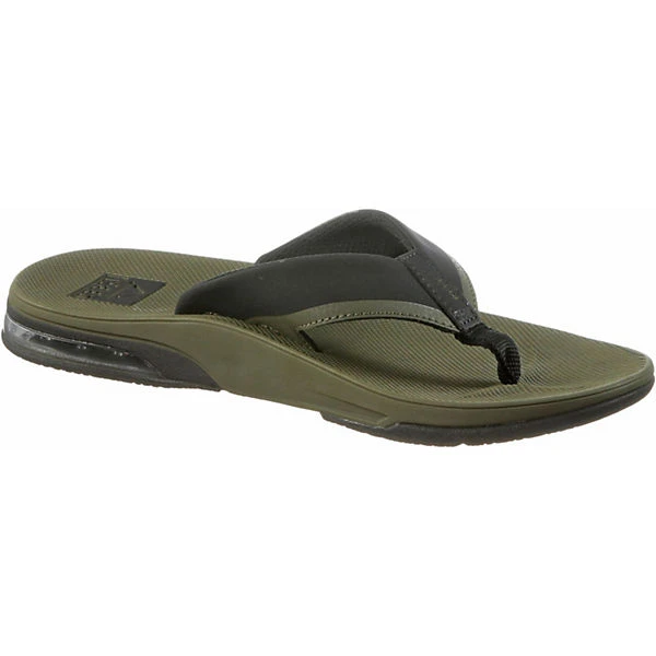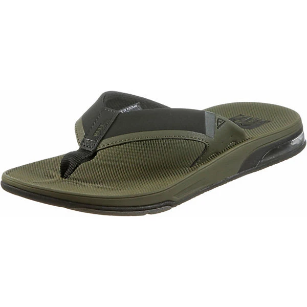 Zehensandalen mit robustem und weichem Zehensteg; gewebte, breite Riemen; EVA-Fußbett mit anatomischer Fußgewölbeunterstützung; rutschfeste Gummiaußensohle mit weichem Luftkissen und verstecktem Flaschenöffner; Material Synthetik, Textil, Gummi.