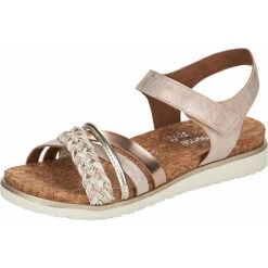Schöne Sandale von remonte bestechen mit den vier unterschiedlichen Riemchen-Looks, die sich übereinander kreuzen und eine neue Gesamtkomposition ergeben. Durch den integrierten Klettverschluss kann besonders bequem in den Schuh geschlüpft werden. Das Fußbett ist mit weichem Kork bezogen – die Sohle dämpft hervorragend ab.