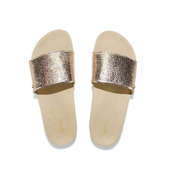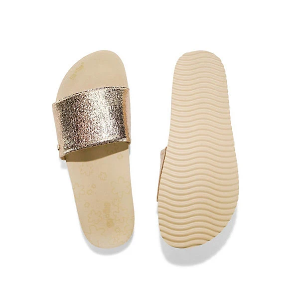 Edelmetalle. Der pool*metallic 2 ist mit seinem breiten Strap in hochwertiger Metallic-Optik ein schicker Begleiter für jede Gelegenheit und durch das bequeme Fußbett ein Liebliengsschuh, den man am liebsten jeden Tag tragen möchte.