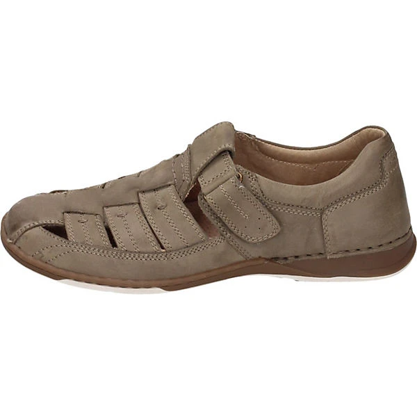 Bei diesem Produkt handelt es sich um einen Schuh aus der Kategorie Riemchensandaletten für Herren. Als Obermaterial wurde Nubukleder verwendet und im inneren Bereich des Schuhs wurde Leder-/Textil-Futter und herausnehmbare Lederdecksohle verarbeitet. Die Schuhweite dieses Artikels ist normal und somit standard. Als Verschlussart wurde Klettverschluss gewählt und die Gummisohle rundet das Produkt ab.