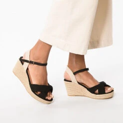 Keilsandaletten Hakenschnürung, Keilabsatz/Wedge, Geflochten