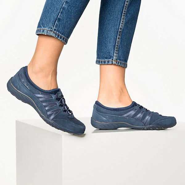 Die SKECHERS Breathe-Easy Moneybags Sneakers bestehen aus anpassungsfähigem Leder und sind sommerlich gestaltet. Das Komforthighlight ist die Decksohle, die aus Memory Foam besteht und sich individuell an den Fuß anpasst.