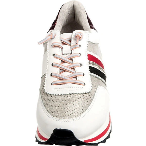 Die Laufsteg München Sneakers Low zeigen sich mit metallisch schimmernden Obermaterial-Bereichen. Der Fersenbereich ist verstärkt und die vorne hochgezogene Profil-Laufsohle mit leichtem Plateau ist rutschhemmend.