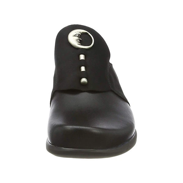 Damen Slipper von Think aus einem feinen hochwertigem Glattleder. Innen ist der Schuh mit einem cromfrei gegerbtem Leder ausgestattet. Der Schuh hat eine normale Weite. Der stabile Blockabsatz hat eine Höhe von cirka 2 cm. Die Schuhgröße fällt regulär aus.