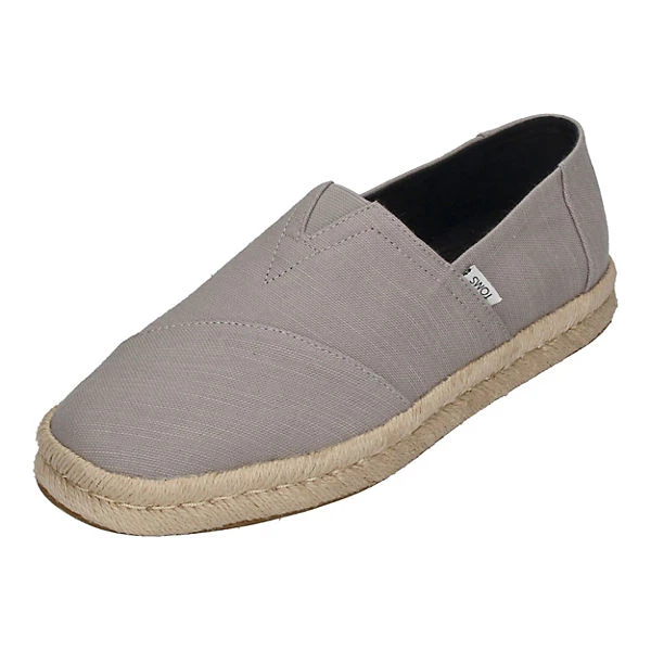 Obermaterial aus recycelter Baumwolle – hergestellt aus mindestens 50 % recycelter Baumwolle, die dazu beiträgt, dass keine Abfälle auf Mülldeponien landen und weniger Wasser und Energie benötigt wird als bei herkömmlicher Baumwolle Twill-Futter und Fußbett Herausnehmbare und handwaschbare OrthoLite®-Eco-LT-Hybrid™-Innensohle für leichtgewichtige Polsterung, hergestellt aus aus 26 % Öko-Anteil, einschließlich 15 % Hybridmaterialien, 6 % Bioöl und 5 % recyceltem Gummi Sohle: Hochwertige, biegsame Gummisohle und natürliche Zwischensohle aus Bast Elastischer Einsatz für schnelles An- und Ausziehen 100% Vegan Marke: TOMS Modell: Alpargata Rope