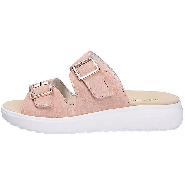Comfort Damen Pantolette von Waldläufer aus einem weichen Veloursleder.Diese Leder hat eine samtartige Oberfläche, ist sehr weiches und atmungsaktiv. Ebenso glänzt das Modell durch eine weiche Lederausstattung. Die mit einem weichen Polster unterlegte lederbezogene Einlegesohle sorgt für ein angenehmes Fußklima, ist auswechselbar und somit für lose Einlagen geeignet. Auf diesen Schuh freuen sich besonders etwas breitere Füße:Die Weite H bietet hier ausreichend Platz. Der Keilabsatz hat eine Höhe von cirka 1 cm ,als Sohlenmaterial kommt ein griffiges und abriebarmes Gummi zum Einsatz. Klettverschlüsse halten den Schuh sicher am Fuß und sorgen auch für die individuelle und optimale Anpassung. Die Schuhgröße fällt regulär aus.